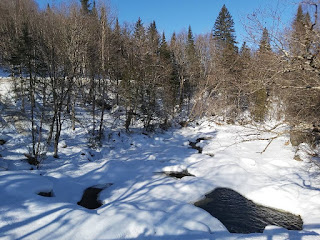 Dimanche 7 mars: -13 C. Longue sortie du faux zoo avec Jean-Yves et Rénald. Départ de Montmorency sur un parcours passant par l'Ange-Gardien, Boischatel et le Parc des Chutes Montmorency. 25 km en 3:03:30 , soit une allure moyenne de 7.20/km.